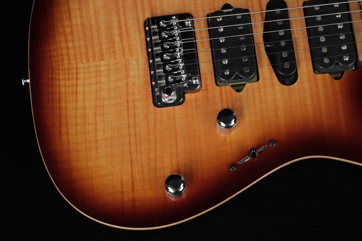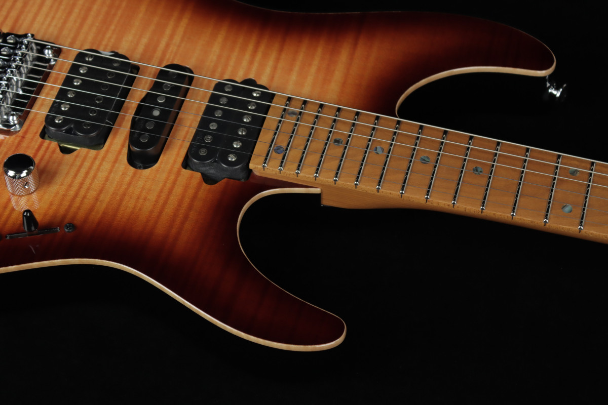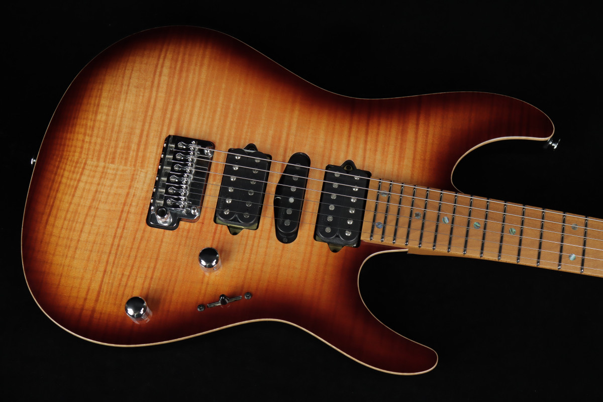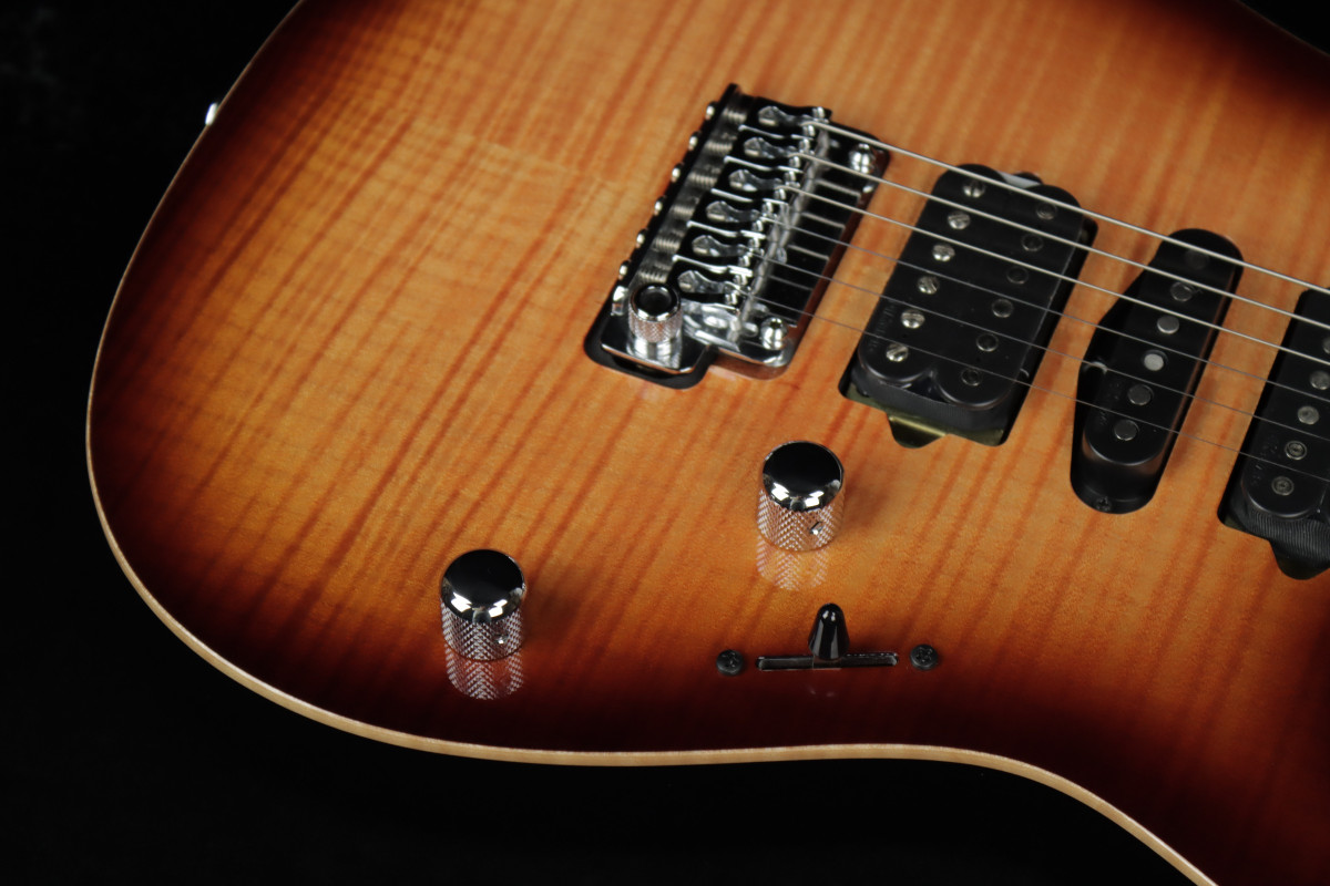 Il corpo è realizzato in ontano con tavola in acero fiammato, mentre il manico in acero "Roasted" è dotato di un profilo AZ Oval "C" ed è abbinato ad una tastiera in palissandro da 22 tasti Jumbo in acciaio Stainless con raggio di curvatura da 12".