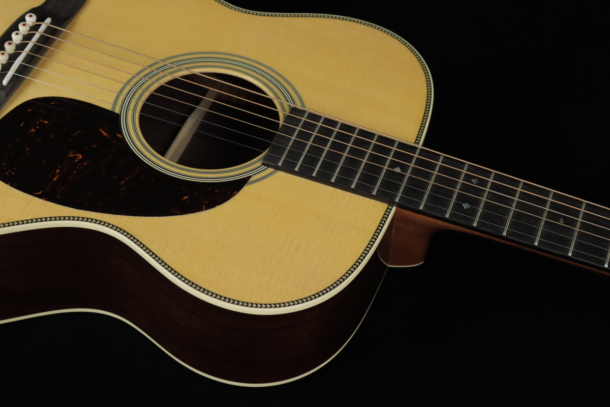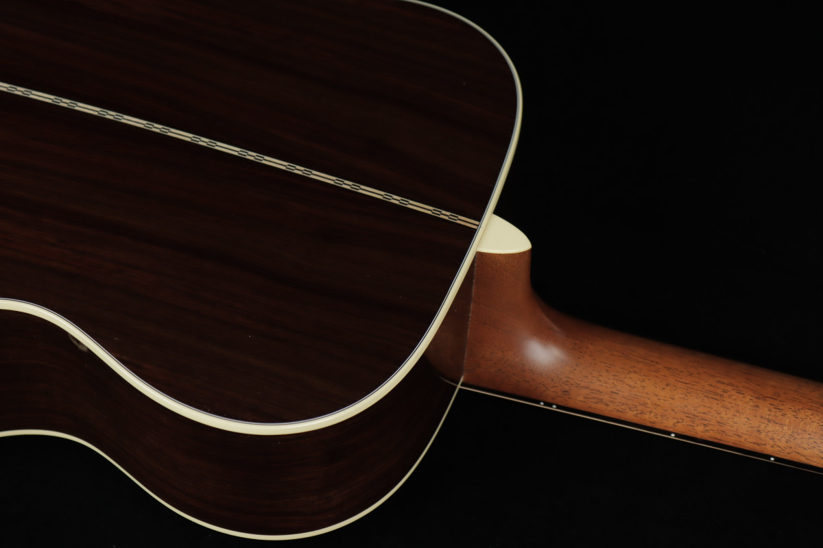 Un'altra miglioria riguarda il manico, che ora presenta il profilo Golden Era Modified “Low Oval”, sottile sui primi tasti per una presa più comoda, ma progressivamente più spesso man mano che si sale lungo la tastiera, migliorando così l’ergonomia complessiva. La tastiera risulta leggermente più sottile, ricalcando il design delle storiche Martin Pre-War, e presenta margini smussati per un maggiore comfort nell’impugnatura.