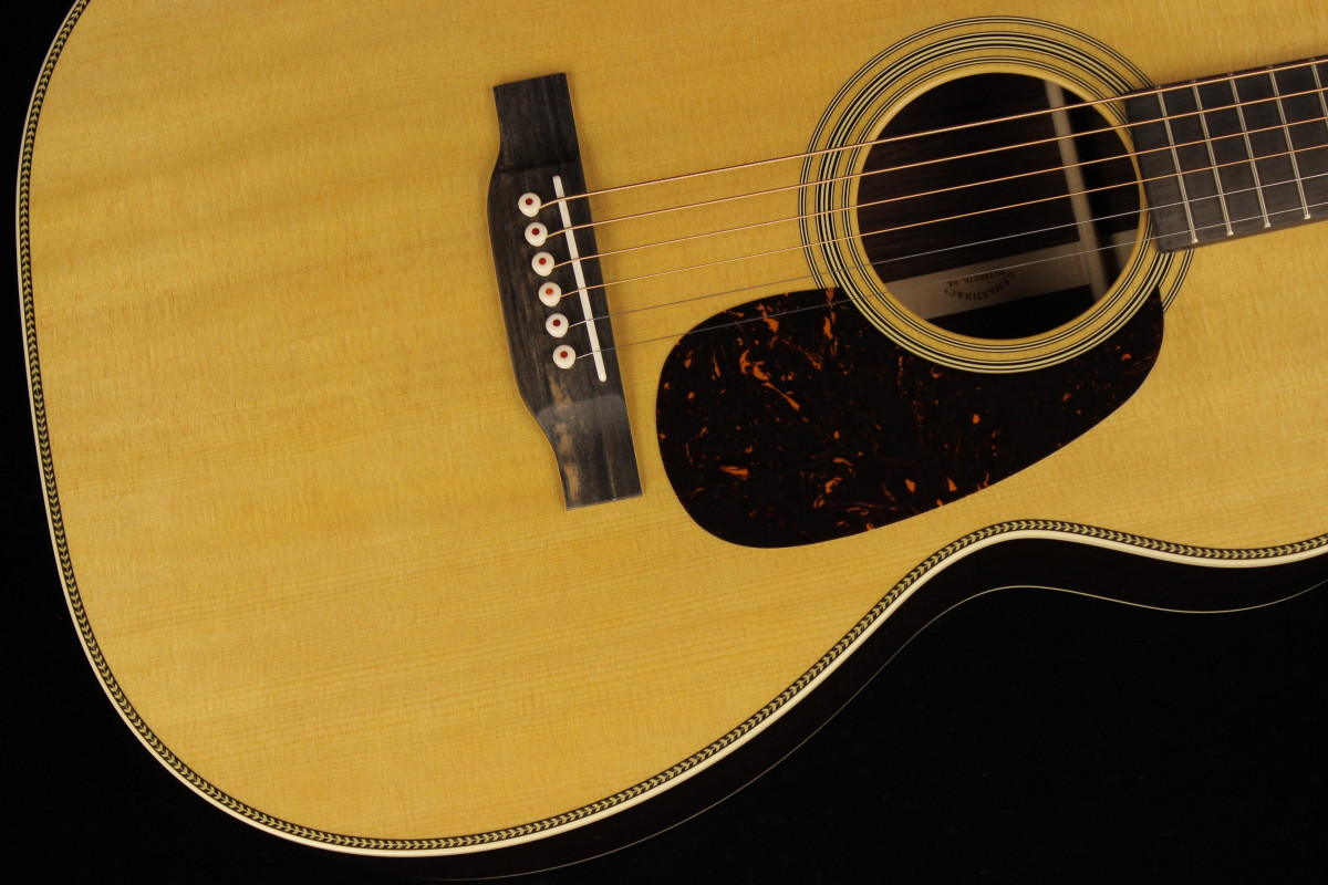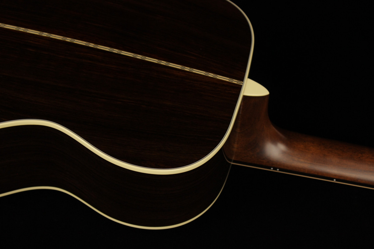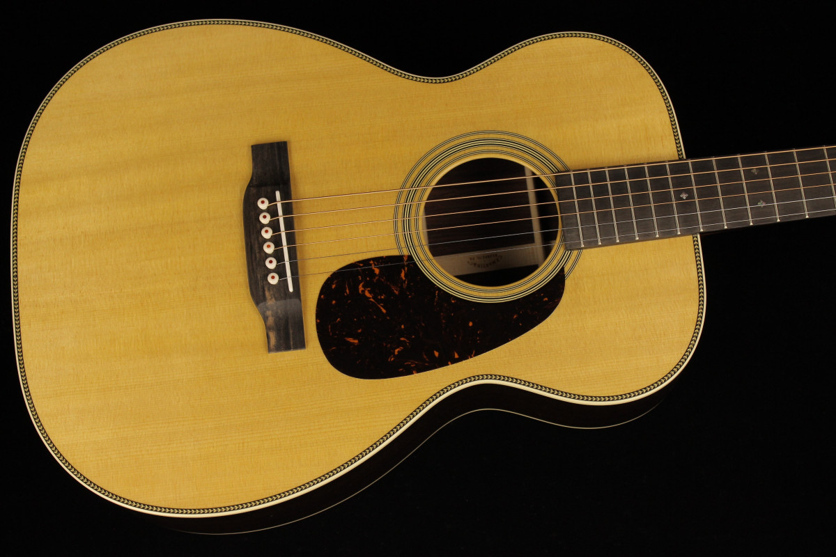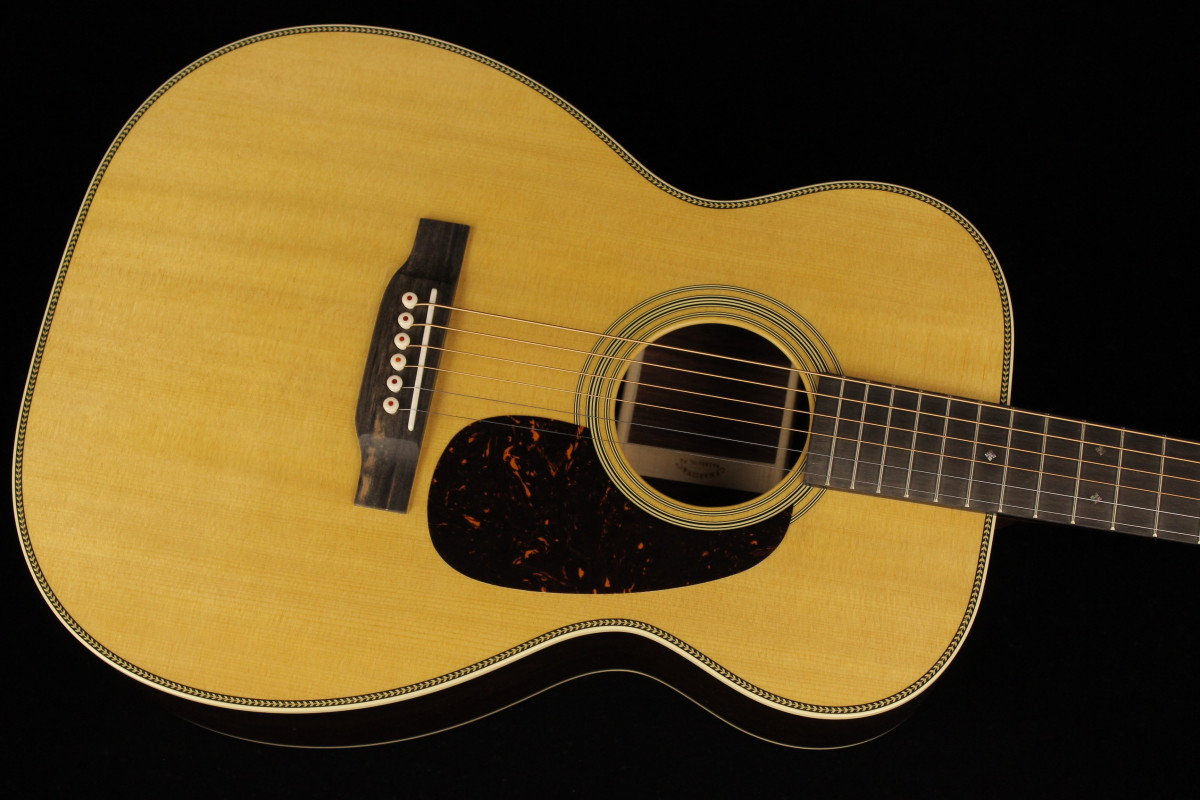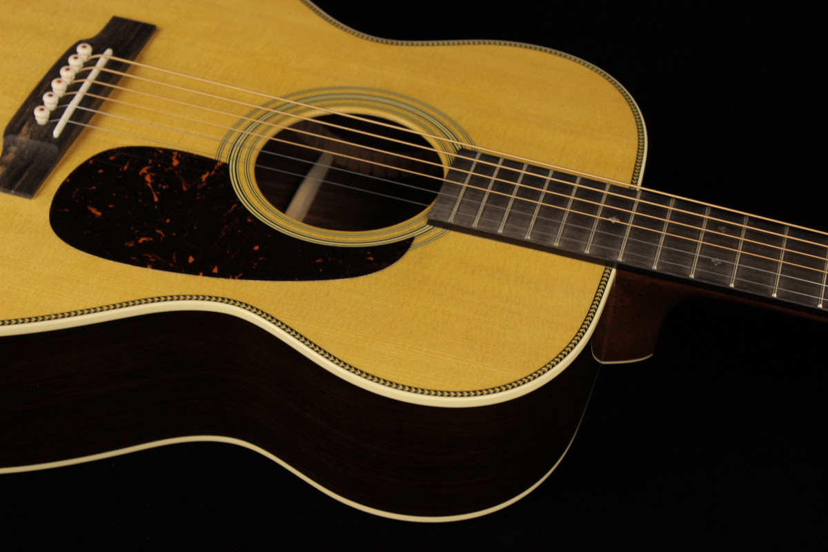 Stile classico e corpo stretto in vita, questa è la 00-28, chitarra fondamentalmente per il chitarrista fingerstyle, caratterizzata da fondo e fasce in palissandro massello e tavola in abete massello.