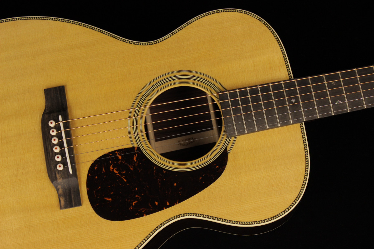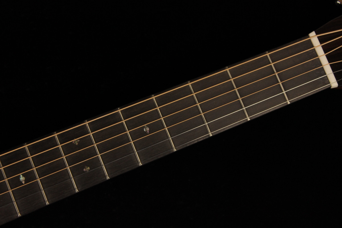 Rispetto alla 000-28 risulta più dinamica e risponde ancor più pronta sotto le dita. La spaziatura al capotasto è di 1-3/4".