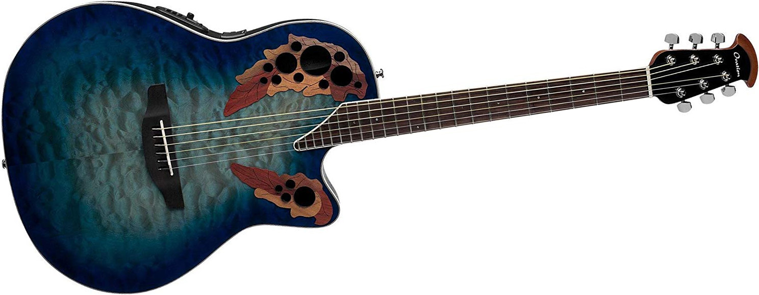 Le chitarre delle Celebrity Collection Elite sono visivamente impattanti, davvero accattivanti nella loro bellezza. In particolare questo strumento è caratterizzato da una tavola in acero marezzato abbinata ad una stupenda finitura Caribbean Blue.