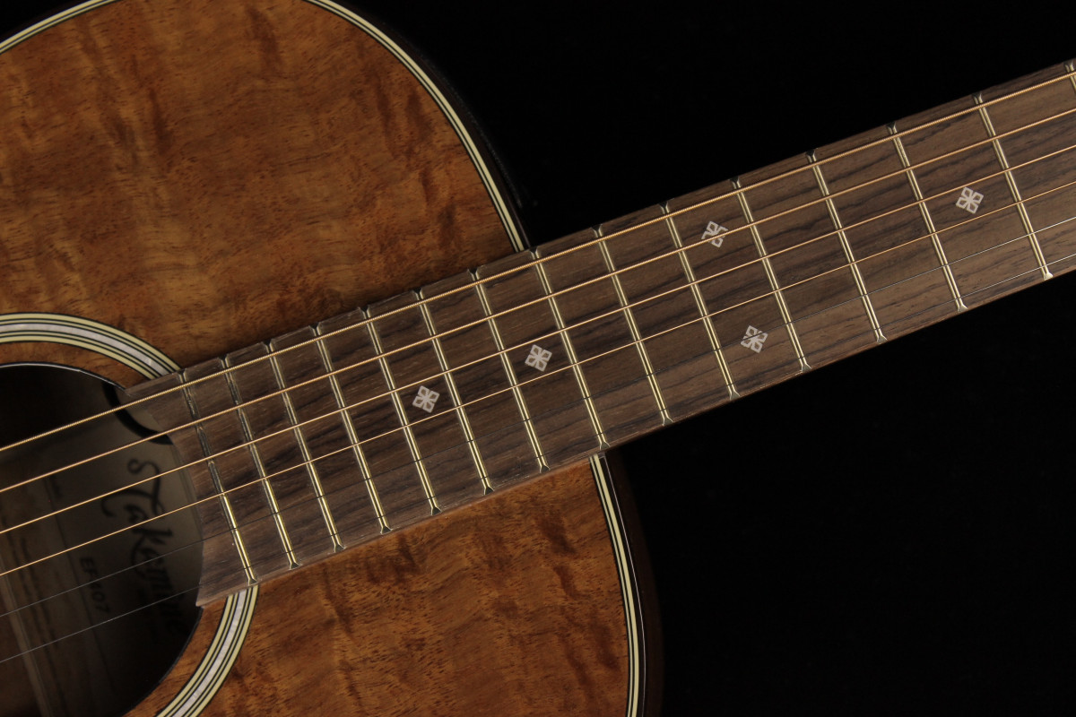 Uno strumento dal fascino vintage e dalla ricercatezza estetica che solo il Koa può dare. La Takamine EF407, facente parte della Legacy Series, è un piccolo scrigno dal timbro chiaro e definito, facile da imbracciare.